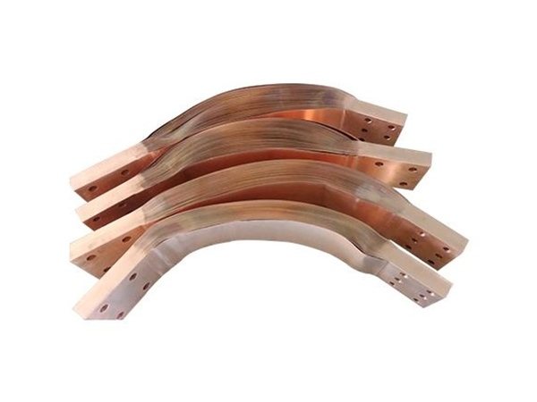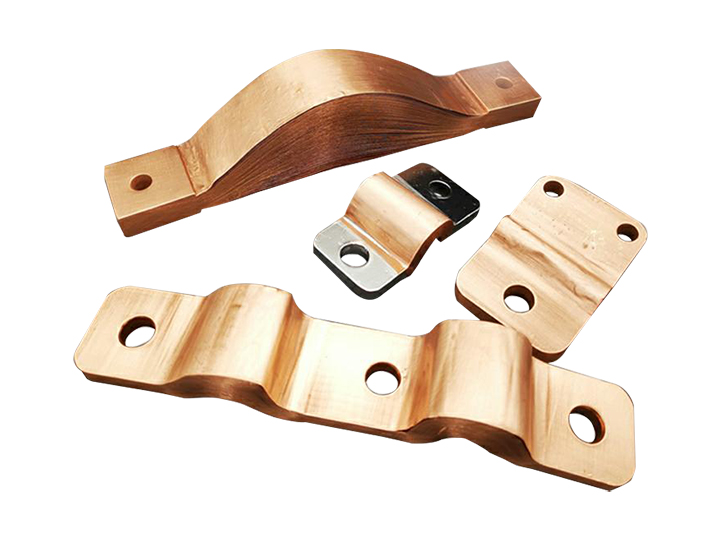 銅箔軟連接原料選用T2紫銅帶含銅量99.97%以上,紫銅具有優(yōu)良的導(dǎo)熱性、延展性和耐蝕性。紫銅帶按狀態(tài)分可分為軟態(tài)與硬態(tài)的,滿足生產(chǎn)安裝不同需求。純銅箔軟連接采用0.05~0.3mm厚銅箔。銅箔軟連接采用高分子擴散焊工藝,將接觸面的多層銅箔融解在一起,改變其分子結(jié)構(gòu),凝固成銅塊后再進行后續(xù)加工。